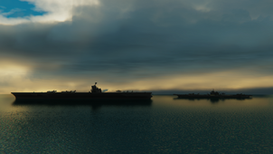 On Task Force 17, Rear Admiral Hamilton Thratcher faced troubling news. Earlier in the day, the large screening force of Belkan 1st fleet located and engaged with the Arcadian North Fleet within gun range and with fighter aircraft. The ensuing battle saw heavy losses in the air on both sides. After just minutes of gunfire, the three Belkan "Eminent Domain" Superbattleships were in flames, on their way to the bottom of the sea. The remaining Belkan "Orion" Class battleships turned tail and fled in humiliation. Reports on radar and from reconnaissance aircraft alerted Thratcher to the troubling news - not only was their screening force sunk or running, but a large detachment of motor torpedo boats and two Natalia-Class battleships were now heading for an intercept of the landing force. The only thing standing between the task force and the incoming might of the Arcadian North Fleet was the aircraft of the Emperor Zeroth Supercarrier and the venerable old Fort Grace. The Kargadan force of 16 strong tasked with covering Task Force 17 now were re-routed to intercept the ships, and a second wave of forty Kargadans were fueled and armed with anti-ship weapons. Bearing down on the battleships, they launched missile after missile, dodging anti-air fire that blanketed whole sheets of airspace. The first Natalia-Class took a direct hit amidships and began to roll over and sink, but the second one took Kaliber after Kaliber. It began to look like she was going to survive, when suddenly a flash erupted from the C-turret, and in the blink of an eye the ship was split in two, its bow and stern rising out of the sea as water poured into the flooded sections. Within seconds, the ship was headed to the bottom. The torpedo boats were no match for the F-52C's E57B "Ebb" radar guided missiles, and they soon followed the Natalias into the sea. The first engagement with Zokesian and Arcadian forces had been a stunning success.